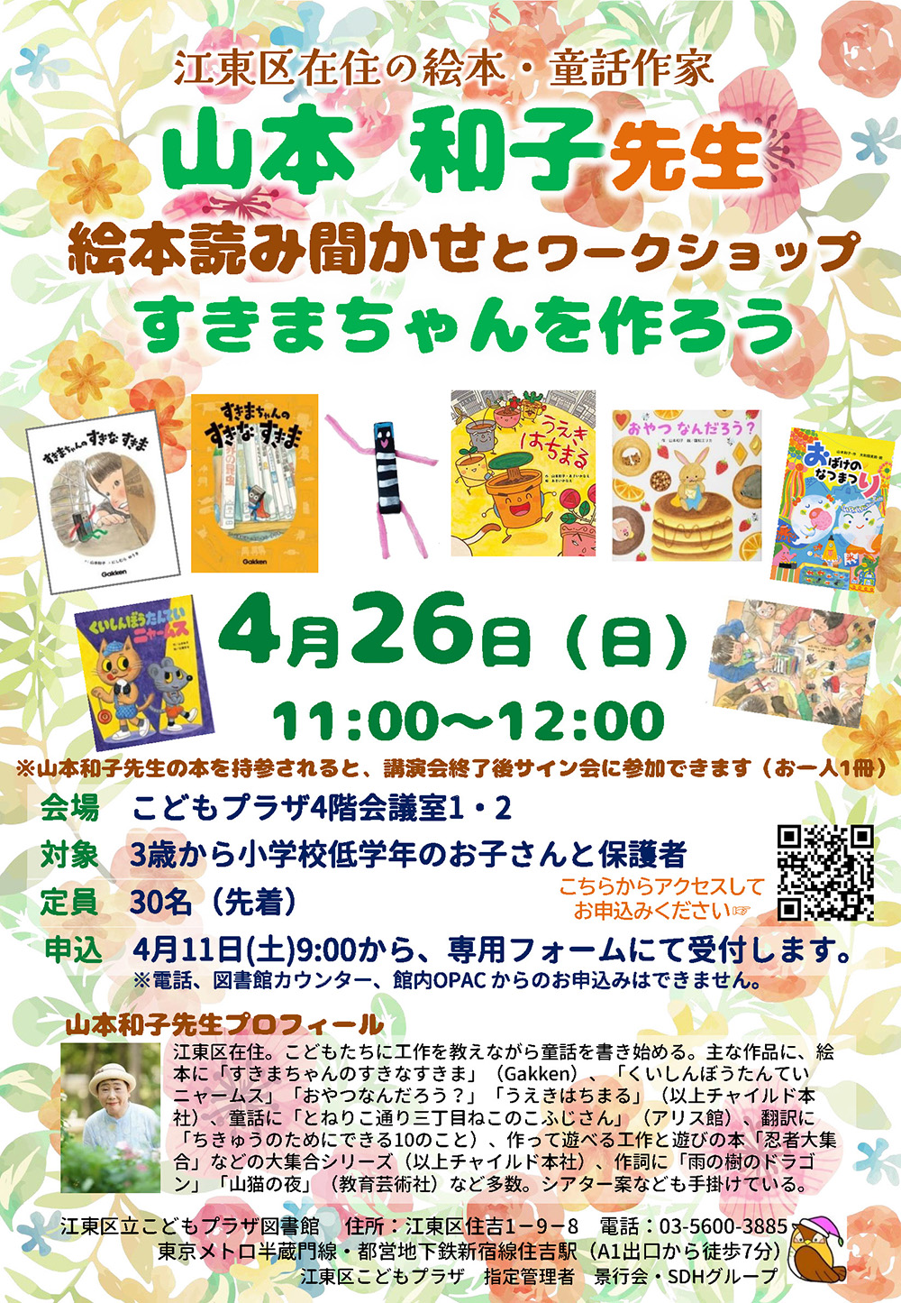 江東区の図書館で絵本読み聞かせ&ワークショップを行います。