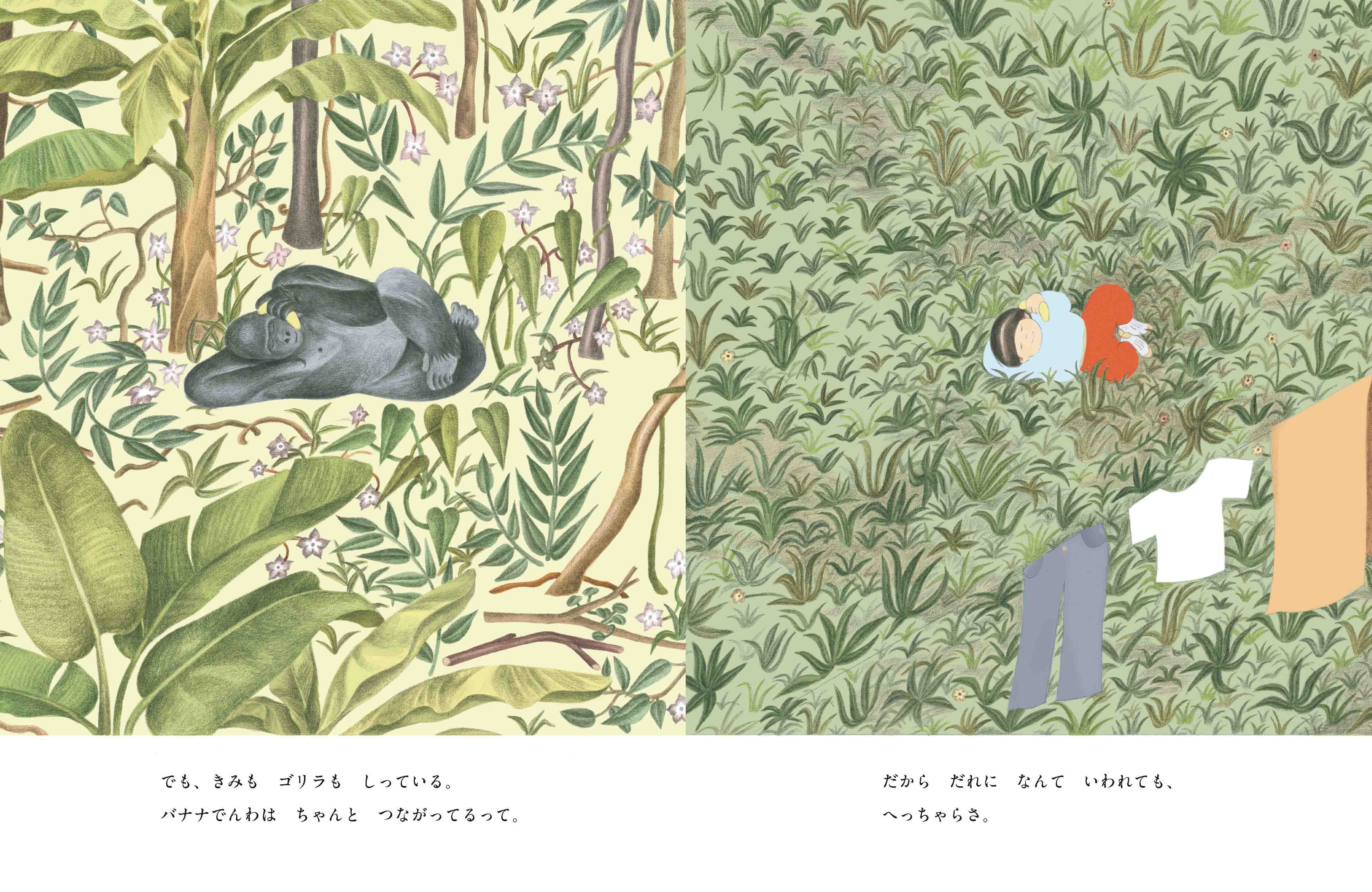想像の世界を信じる子どもたちに贈る友情物語—ぼくたちは知っている。バナナ電話はちゃんとつながってるって。バナナを耳にあてて、電話をすると…。なんと、ジャングルの奥に住むゴリラが出たよ。「もしもし? おまえ、だれ?」そうきかれても、あせらずに。まずは名前を伝えよう。その後は、なんでもいいから、自分のことを話してみよう。そのうちに、秘密を打ち明けるくらいに仲良くなって…。ユーモアあふれる「もしも話」。コミュニケーションの中でうまれる豊かな時間を、軽やかに描きます。